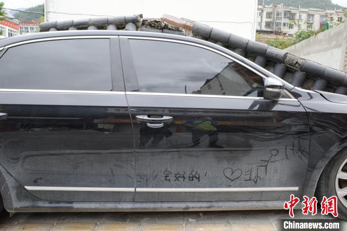 這座繁華小鎮(zhèn),往日的熱鬧與此時(shí)的寂靜對比鮮明,這是大自然的威力。不過,街頭的蛛絲馬跡顯露著當(dāng)?shù)厝说臉酚^。磨西鎮(zhèn)街邊,一輛黑色轎車被倒塌的圍墻壓癟了一半,有人在車門上寫了三個(gè)字——“會好的!”