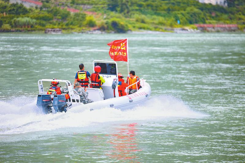 大渡河畔 救援隊(duì)伍水陸并進(jìn)奔赴災(zāi)區(qū)