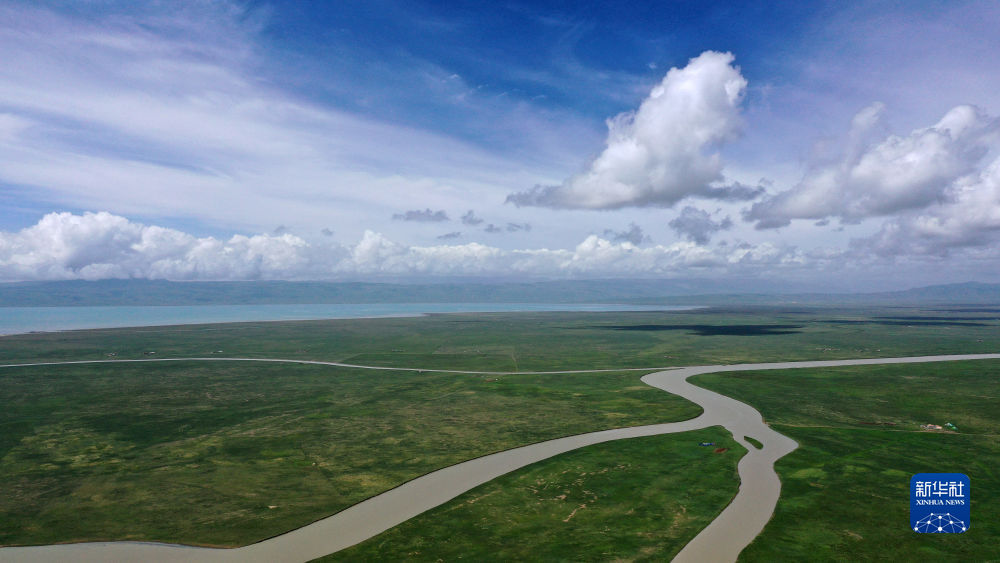 這是青海湖布哈河濕地一景(2020年7月10日攝,無人機(jī)照片)。新華社記者 張宏祥 攝