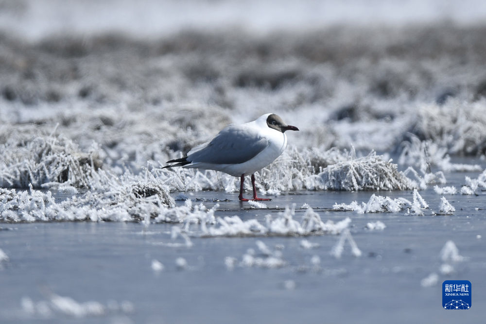這是2020年4月8日在青海省海北藏族自治州剛察縣青海湖畔拍攝的棕頭鷗。新華社記者 張龍 攝