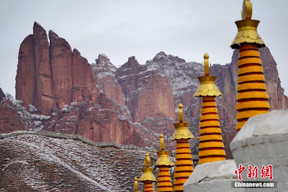 日前,青海坎布拉國家地質(zhì)公園迎來一場降雪,地質(zhì)公園內(nèi)堡狀、墻狀、柱狀等各類丹霞地貌,披上一層銀裝。位于青海省黃南藏族自治州尖扎縣的坎布拉區(qū)域,自然景觀以丹霞地貌為特色,尤以丹霞峰林、丹霞石墻最為發(fā)育。目前,青海坎布拉國家地質(zhì)公園成功入選世界地質(zhì)公園候選地。劉德賢 攝