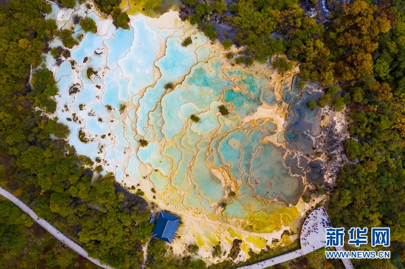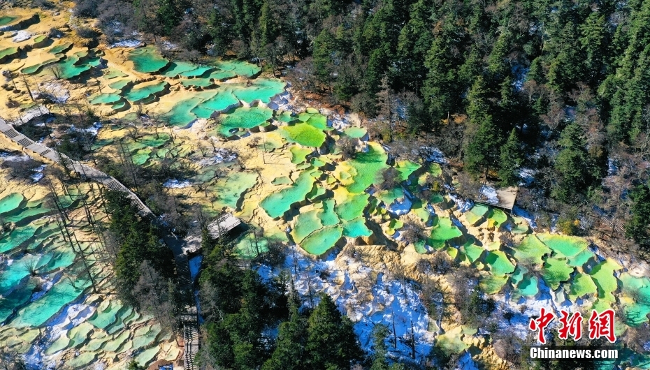 11月18日,航拍四川省阿壩藏族羌族自治州松潘縣黃龍景區(qū)風(fēng)光。(無人機(jī)照片) 中新社記者 安源 攝