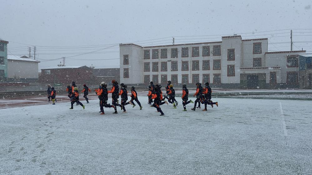運(yùn)球、顛球、體能訓(xùn)練……回到家鄉(xiāng)后,一有時(shí)間,多果和小伙伴們堅(jiān)持練球。惡劣的環(huán)境并未減少他們的信心和決心,練習(xí)時(shí)常有不少隊(duì)員因鏟球等動(dòng)作滑倒在地,他們笑著拍拍身上的泥土和冰雪,繼續(xù)練習(xí)。