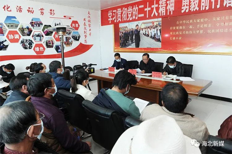 圖為11月6日,青海省海北州州委書(shū)記多杰來(lái)到剛察縣果洛藏貢麻村宣講黨的二十大精神 圖片來(lái)源:海北民語(yǔ)微信公眾號(hào)