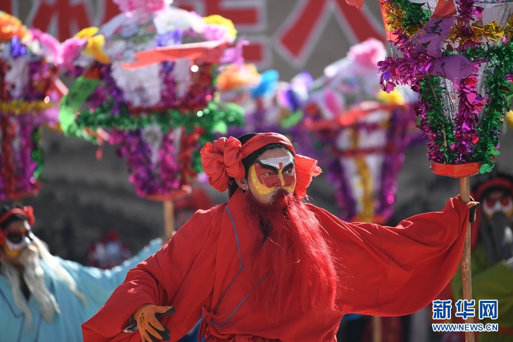 1月31日,貴德縣河陰鎮(zhèn)社火展演現(xiàn)場(chǎng)。