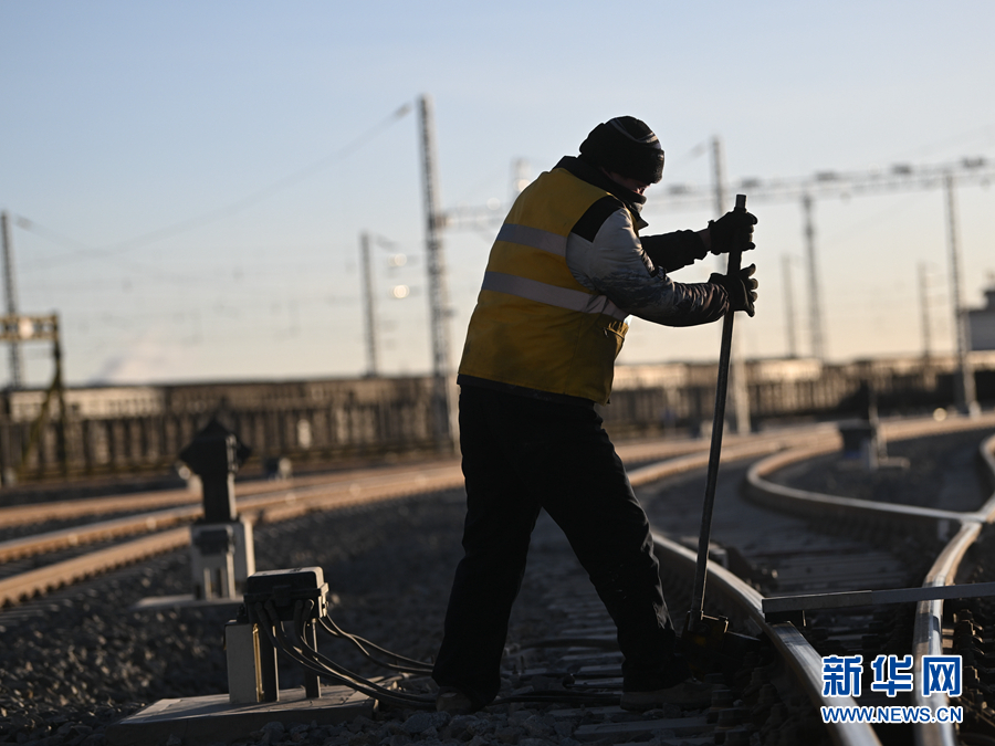 春運期間,中國鐵路青藏集團有限公司格爾木工務段格南線路工區(qū)的職工始終在崗在位,擔負格庫鐵路最大編組站的養(yǎng)護維修,確保格庫鐵路物資運輸暢通。