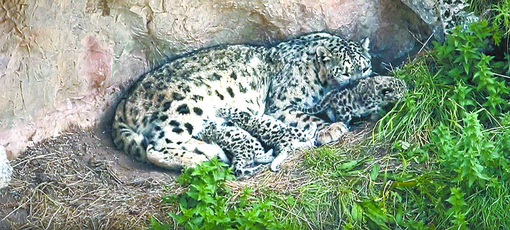 雪豹愜意地哺育幼崽。 祁連山國(guó)家公園青海省管理局供圖