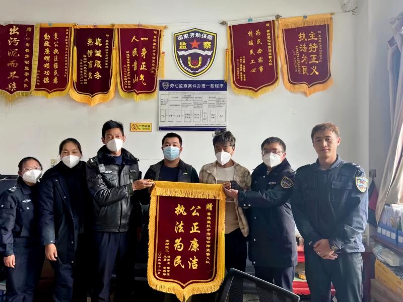 2022年12月,楊應中所在的香格里拉市人社局勞動監(jiān)察大隊收到某建筑工程有限公司拖欠農(nóng)民工工資22000元的情況反映,楊應中和監(jiān)察人員迅速開展調查工作,經(jīng)過一系列的調查處理,被拖欠的工資全部打入農(nóng)民工賬戶,妥善有效地化解了欠薪隱患。事后,6名涉事農(nóng)民工將一面印有“討薪維權暖人心 排憂解難似親人”的錦旗送到該大隊,對勞動保障監(jiān)察人員追回其被拖欠工資表示感謝,由衷稱贊他們迅速反應、高效處置的工作作風。一面錦旗、一份責任,錦旗不僅承載了群眾對勞動保障監(jiān)察工作的肯定,更承載著勞動者對勞動監(jiān)察工作的信任和期盼。對楊應中來說,用心用情為民服務是每天的工作日常,群眾的認可更加堅定他的初心使命,他說:“在今后的工作中,一定繼續(xù)為勞動者解決‘急、難、愁、盼’問題,以實際行動切實保護好勞動者的合法權益?!?/p>