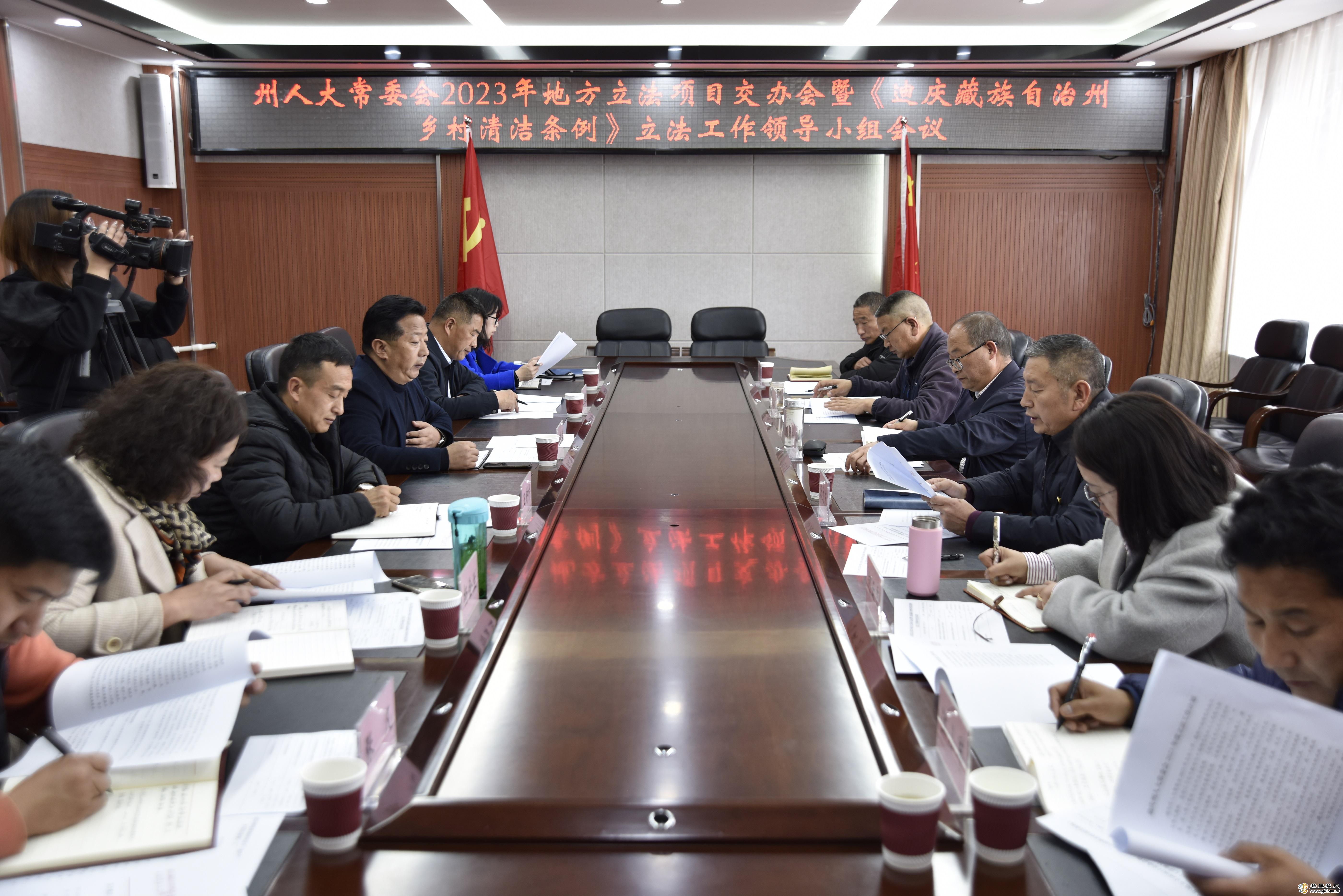 4月3日,州人大常委會地方立法項目交辦會暨《迪慶藏族自治州鄉(xiāng)村清潔條例》(以下簡稱《條例》)立法工作領導小組會議在州人大常委會主任會議室召開。