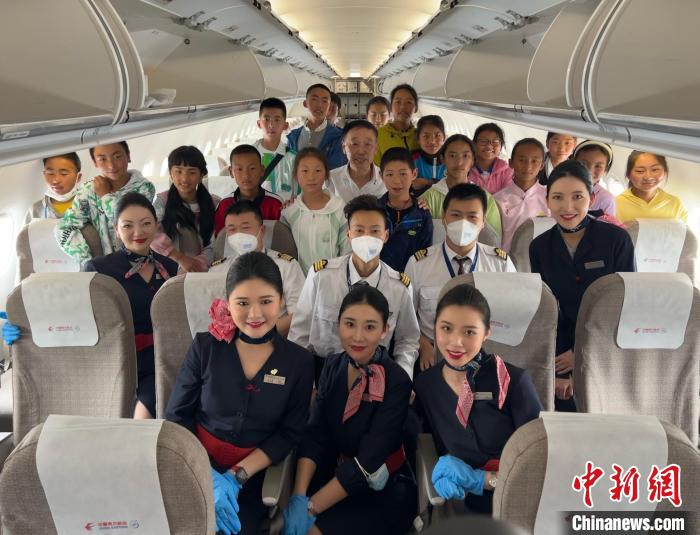 圖為藏族小朋友們跟機(jī)組合影留念。東航甘肅分公司供圖