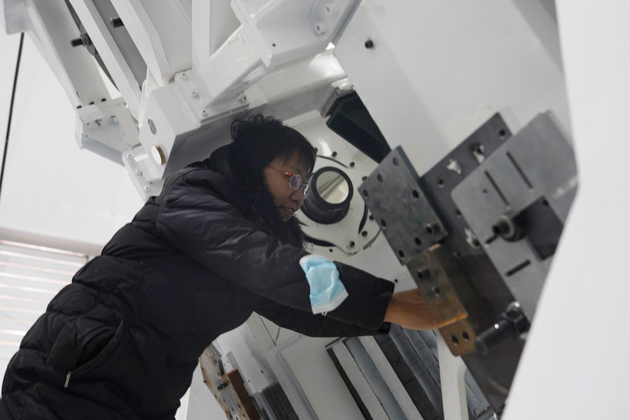 4月8日,中國(guó)科學(xué)院國(guó)家天文臺(tái)懷柔太陽(yáng)觀測(cè)基地總工程師王東光在AIMS圓頂內(nèi)工作。新華社記者 陳杰 攝