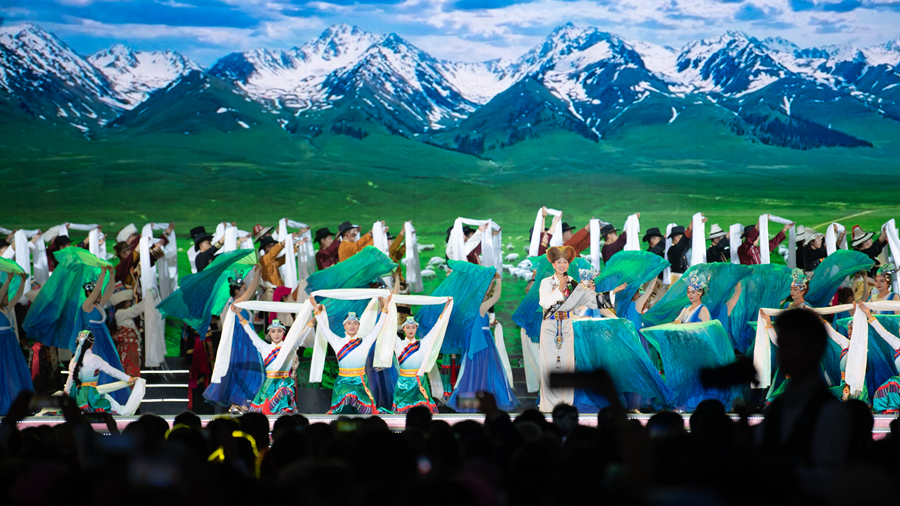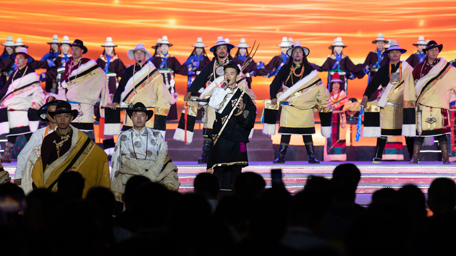 演出現(xiàn)場,燈光秀、曲藝表演、民族歌舞、服飾展演、情景朗誦等綜合藝術(shù)形式輪番上演,為現(xiàn)場觀眾獻上了一場精彩的視聽盛宴。其中,海南州藏族服飾藝術(shù)嘉年華是當?shù)刈罹哂绊懥Φ拿褡逦幕放?,也是當?shù)厝罕娚钪械乃囆g(shù)盛會?;顒訉鹘y(tǒng)藏族服飾品牌與創(chuàng)新服飾時尚品牌融為一體,通過藏族傳統(tǒng)服飾和現(xiàn)代服飾展演,充分展示了海南州豐富多彩的藏族服飾文化魅力。