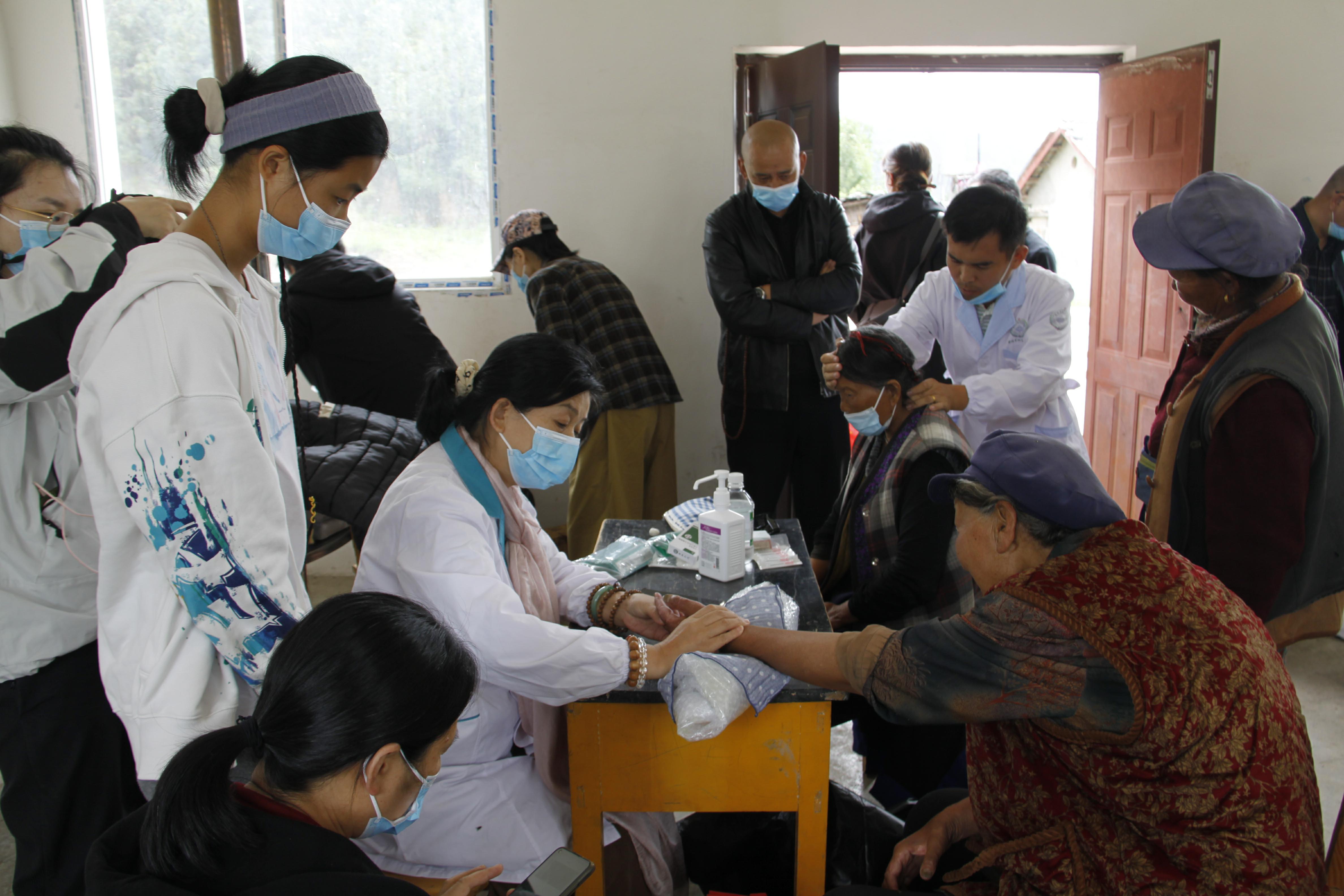 醫(yī)護(hù)人員為村民開展健康義診服務(wù)。服務(wù)包括:免費(fèi)量血壓、測血糖,診脈、按摩、針灸,為老年人提供中醫(yī)適宜技術(shù);詢問既往病史,了解近期用藥情況,為村民免費(fèi)發(fā)放常用藥品;開展健康教育宣傳,發(fā)放藏漢雙語《百草箱女性衛(wèi)生健康手冊(2023年版)》等讀物,普及衛(wèi)生健康常識。