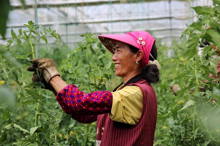 連日來的持續(xù)高溫,丹巴縣半扇門鎮(zhèn)團(tuán)結(jié)村村民陳宗花,就一直在喇嘛寺村黨支部書記袁強(qiáng)創(chuàng)建的曲登沙農(nóng)機(jī)專業(yè)合作社基地為辣椒澆水。勞動(dòng)強(qiáng)度不大,一天有100元的收入,年收入1.8萬元。自從2015年到基地打工以來,她的年收入就穩(wěn)定在2萬元左右。
