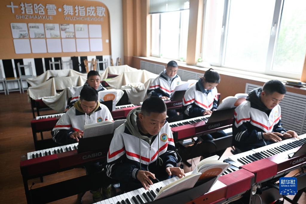 9月8日,在果洛藏族自治州職業(yè)技術(shù)學(xué)校,學(xué)前教育專業(yè)學(xué)生在上音樂(lè)課。新華社記者 張龍 攝