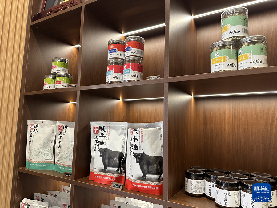 班瑪縣特色農副產(chǎn)品銷售直營店的產(chǎn)品。新華社記者 白瑪央措 攝