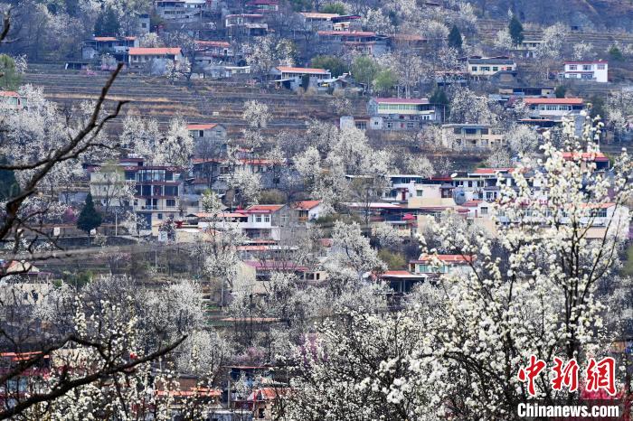 梨花叢中的村寨。記者 安源 攝