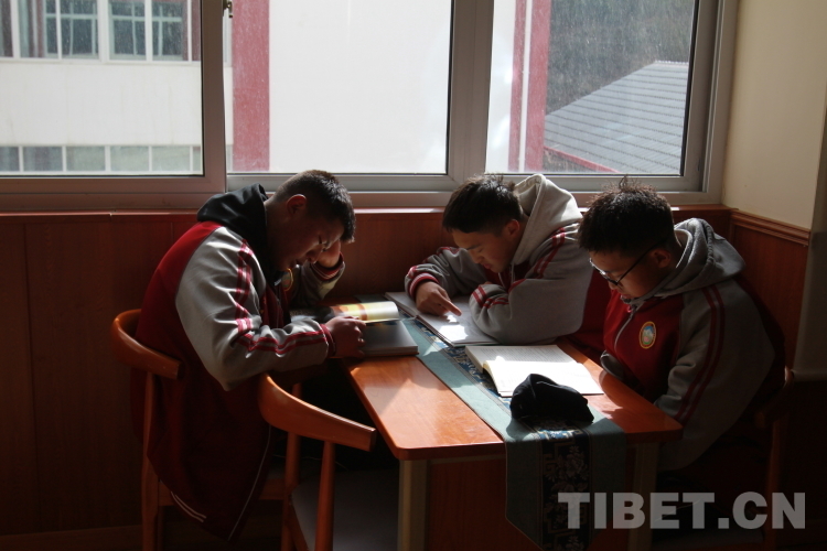 圖為陽光下看書的學(xué)生們 攝影:登真巴珍