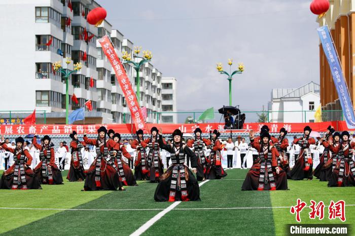 圖為演員通過舞蹈展示國家級非遺華熱藏族服飾。馬銘言 攝