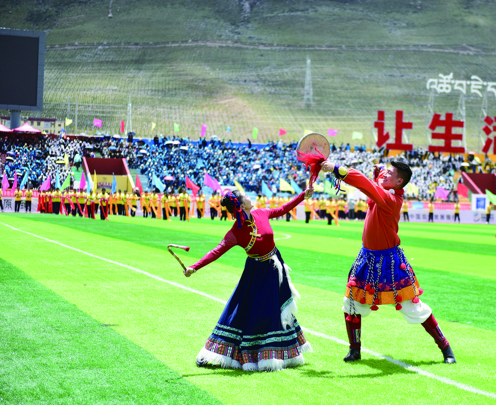 玉樹市民求培說:“玉樹足球是我們的驕傲,我自己也非常喜歡踢足球,今天特意過來為家鄉(xiāng)的球隊喝彩助威,希望他們可以在家門口取得勝利?!彪S著一聲哨響,比賽正式開始,所有人的目光都聚焦在綠茵場上,隊員們奔跑如飛迅速進入“戰(zhàn)斗”狀態(tài)。一腳傳中、挑球過人……雙方互不相讓,積極拼搶。