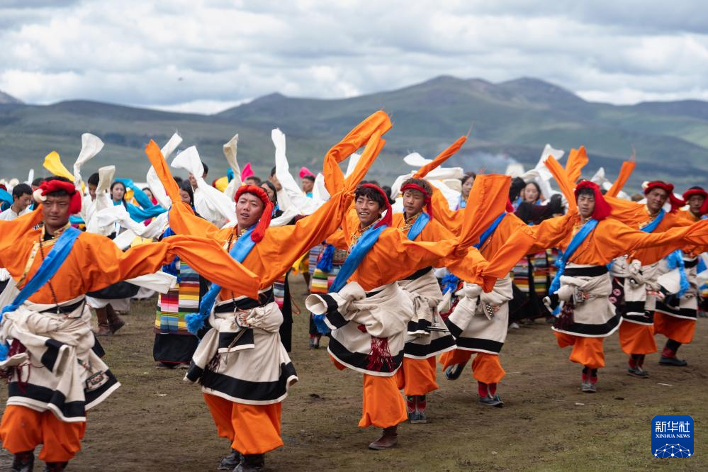 7月30日在理塘縣多旺塘賽馬場拍攝的鍋莊表演。新華社記者 江宏景 攝