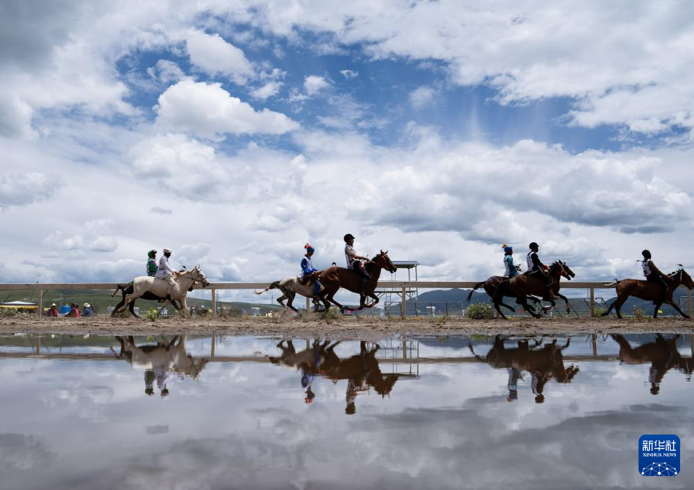 7月30日,在理塘縣“八一”賽馬場,選手參加小馬10000米比賽。新華社記者 江宏景 攝