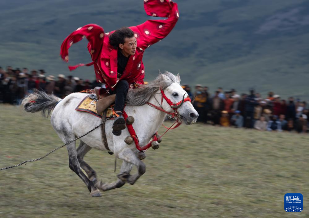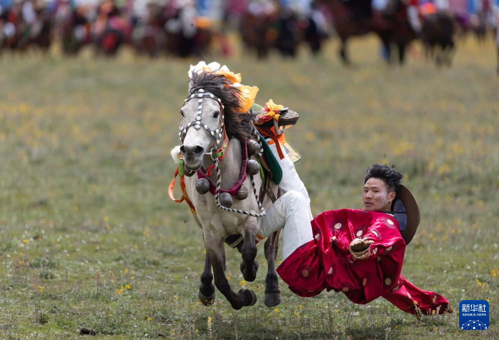 7月30日,四川省甘孜藏族自治州理塘“八一”賽馬會在多旺塘賽馬場啟幕,來自全縣各鄉(xiāng)鎮(zhèn)近千名牧民匯聚一堂。賽馬會上表演的拾哈達、馬上射擊、馬上射箭、鐙里藏身、五彩凌空等馬術絕技,讓當?shù)啬撩窈陀慰拖硎芰艘粓鲆曈X盛宴。
