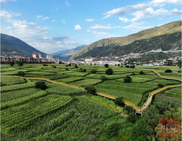 巴塘縣城與田園棧道美景同框