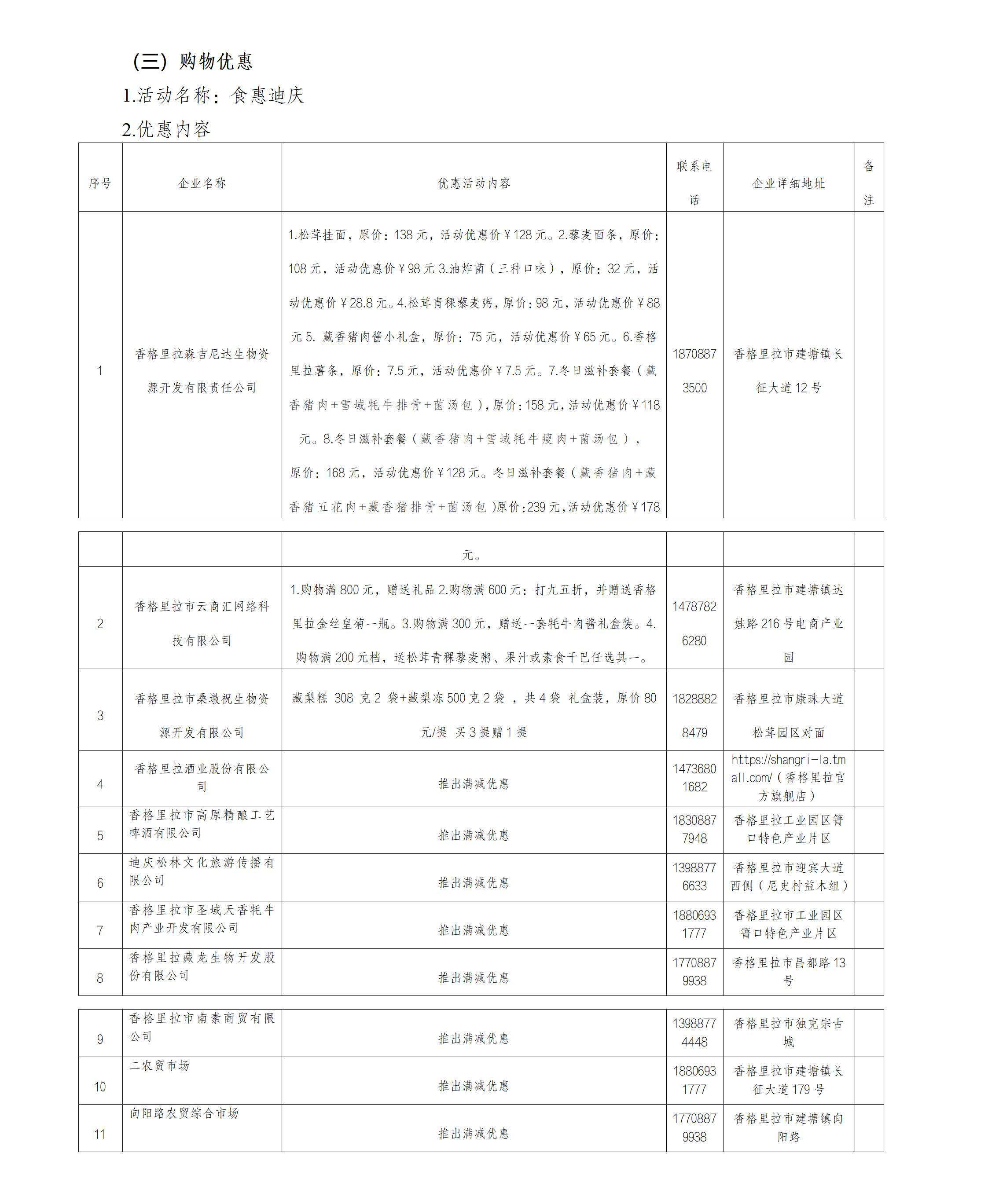 為熱烈迎接香格里拉的冬季旅游市場消費客群,迪慶商務部門在動車開通一周年之際特別推出一系列“吃、住、購”的優(yōu)惠政策。6家線上特色餐飲企業(yè)及20家古城精選餐飲業(yè)將提供2.2折至9.2折的超值優(yōu)惠,同時發(fā)放各類優(yōu)惠券;19家優(yōu)質線上住宿企業(yè)及州內百余家民宿將提供8折至8.5折的住宿優(yōu)惠;10余家迪慶特色產(chǎn)品的生產(chǎn)銷售企業(yè)推出滿減折扣優(yōu)惠、享受贈品的優(yōu)惠福利,讓廣大游客樂游香格里拉提升旅游體驗。