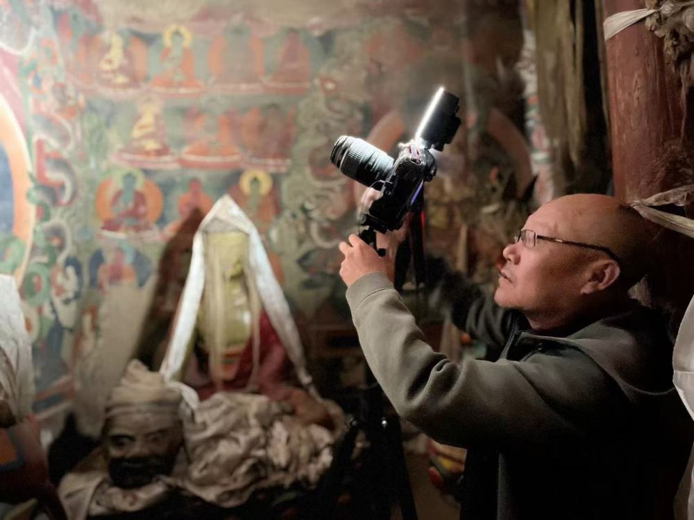 2024年7月,范久輝在德格措充寺拍攝壁畫。受訪者供圖