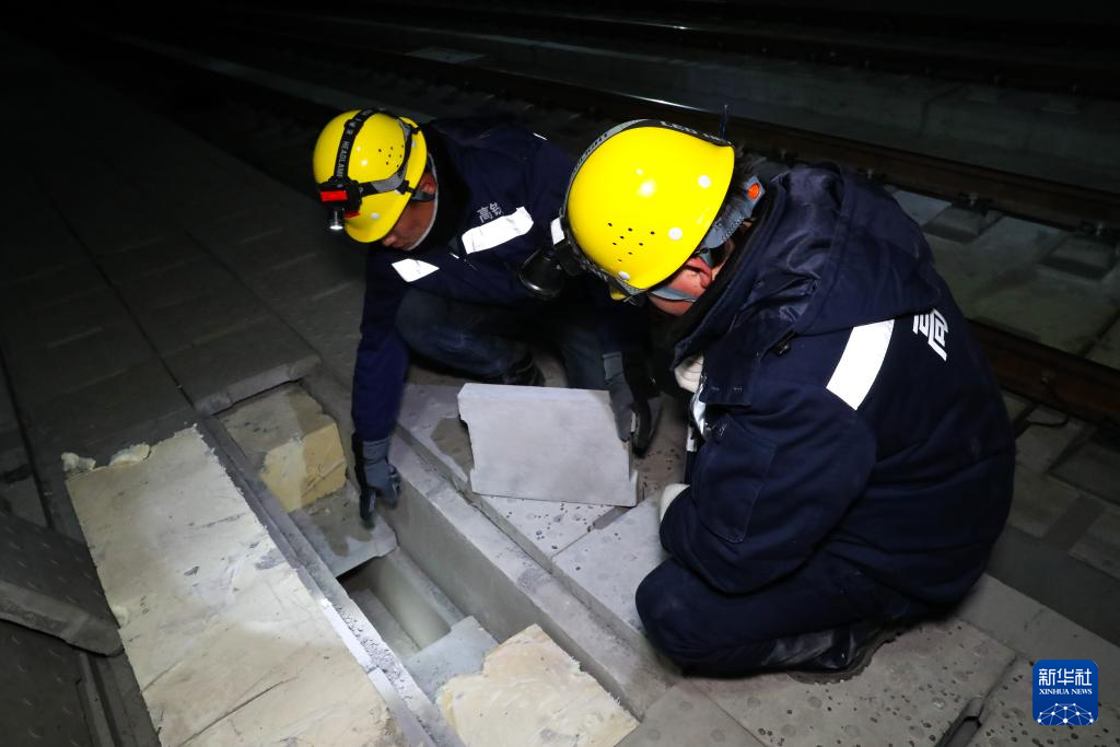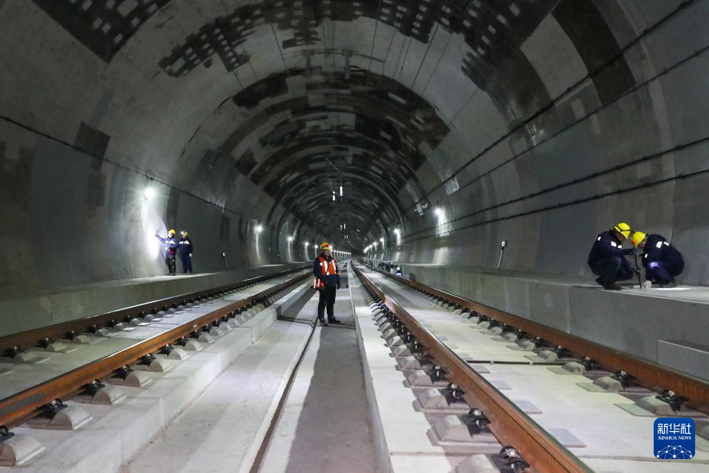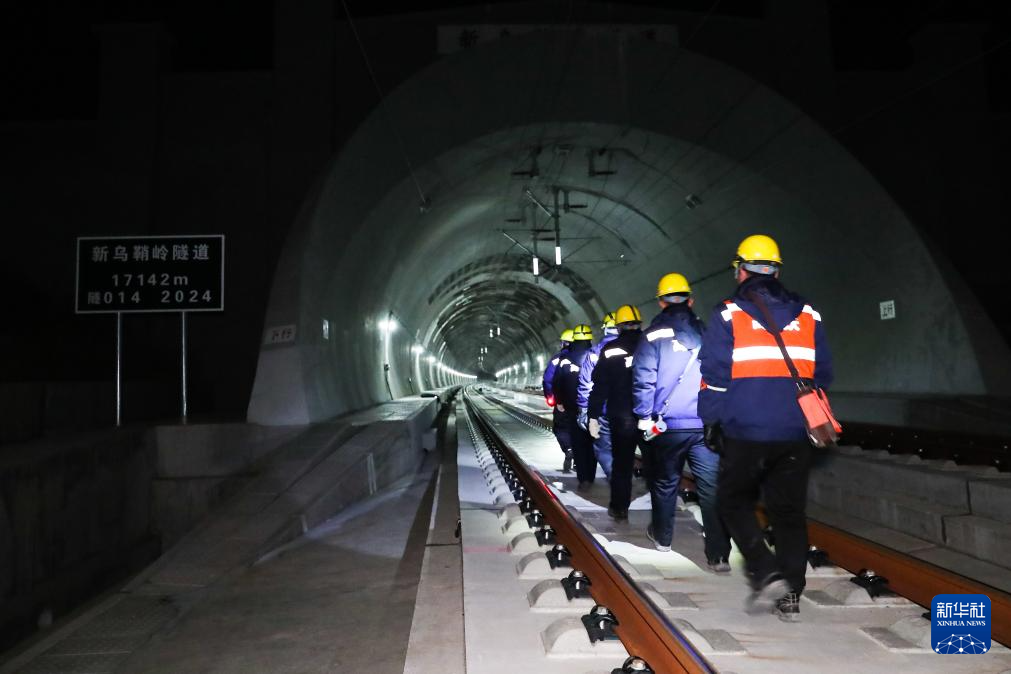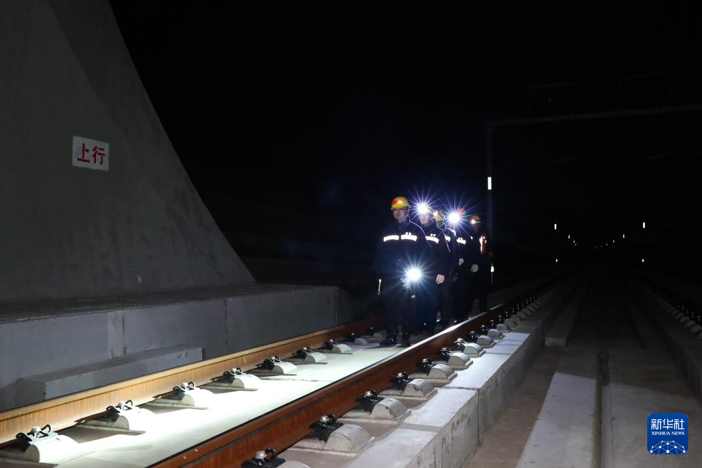1月14日凌晨,橋隧工在新烏鞘嶺隧道內(nèi)開(kāi)展全面檢查。新華社記者 郎兵兵 攝
