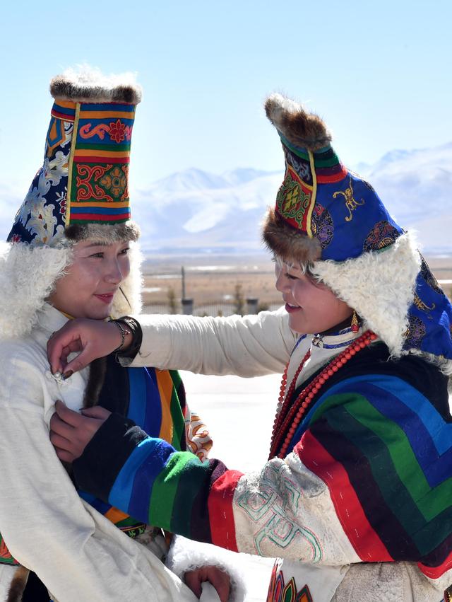 2月12日拍攝的著盛裝的拉薩市當雄縣藏族牧民。新華社記者 覺果 攝
