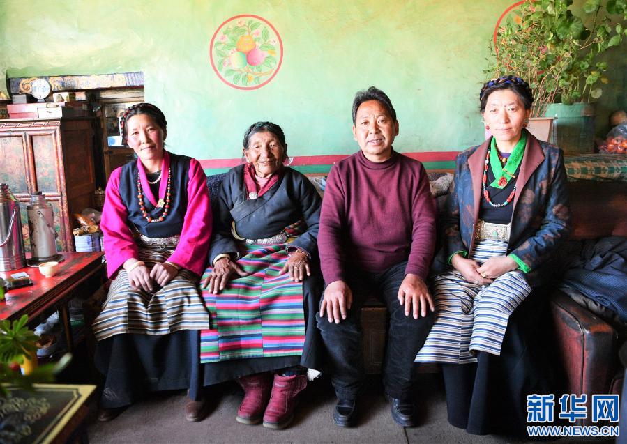 巴桑(左二)和家人合影(2月27日攝)。新華社記者 孫非 攝