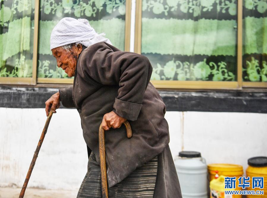 卓嘎老人在院子里散步(3月22日攝)。新華社記者 晉美多吉 攝