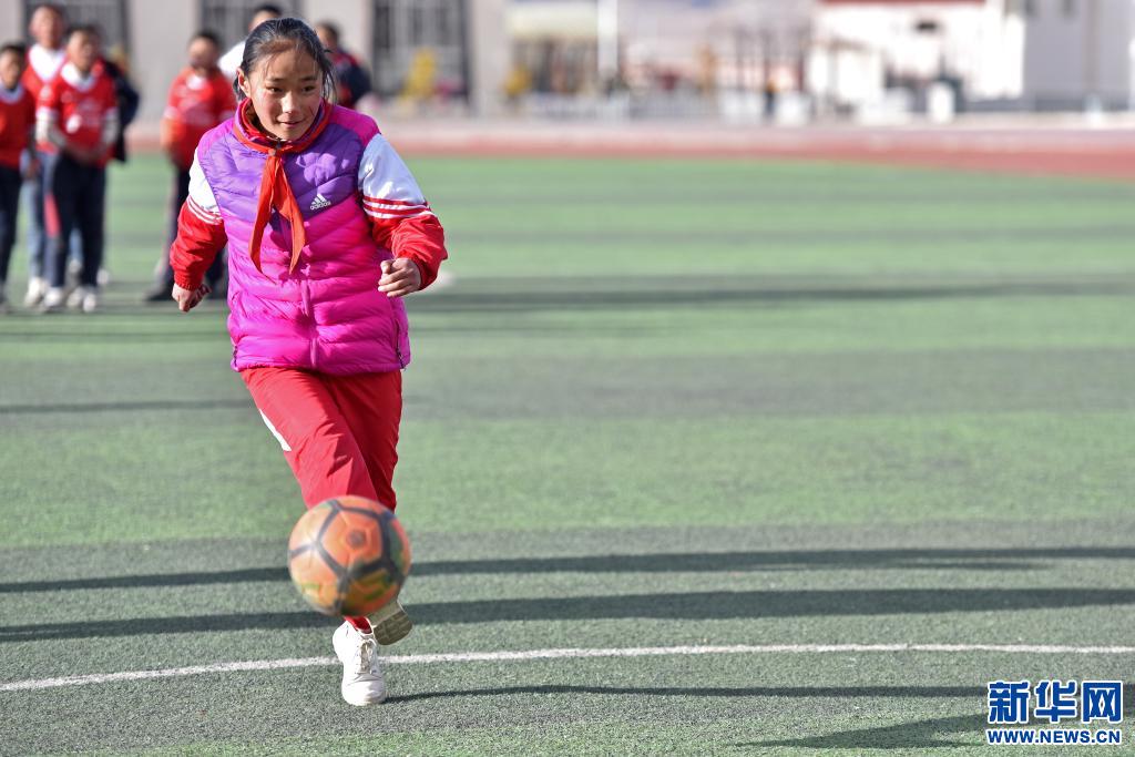 多吉卓瑪參加學(xué)校的足球興趣課(3月9日攝)。新華社記者 孫瑞博 攝