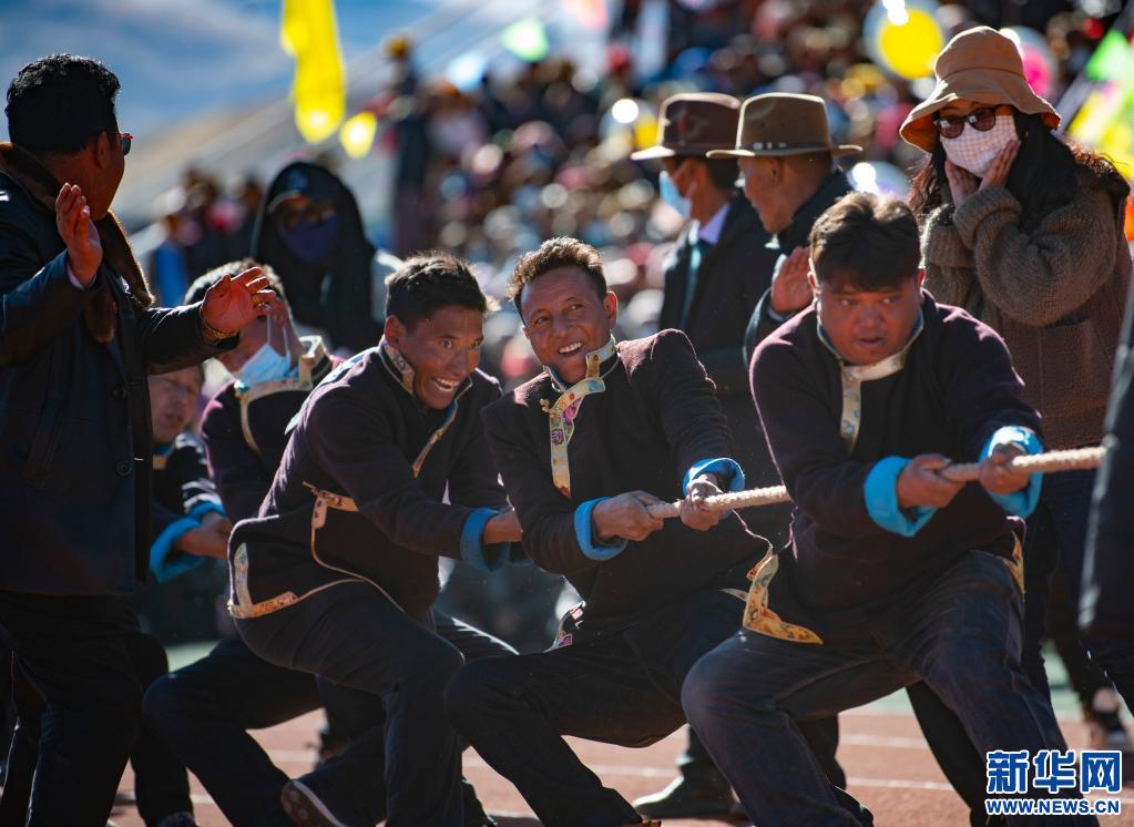 圖為2020年11月29日,山南市扎囊縣的農(nóng)牧民在該縣首屆農(nóng)民運(yùn)動(dòng)會(huì)中參加拔河比賽,在農(nóng)閑期間參與全民健身的現(xiàn)場(chǎng)。新華社記者 普布扎西 攝