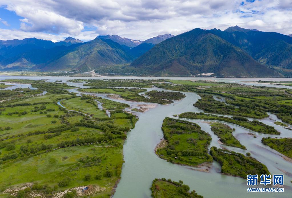 這是6月19日拍攝的林芝市米林縣境內(nèi)的瓊林村(無(wú)人機(jī)照片)。新華社記者 普布扎西 攝
