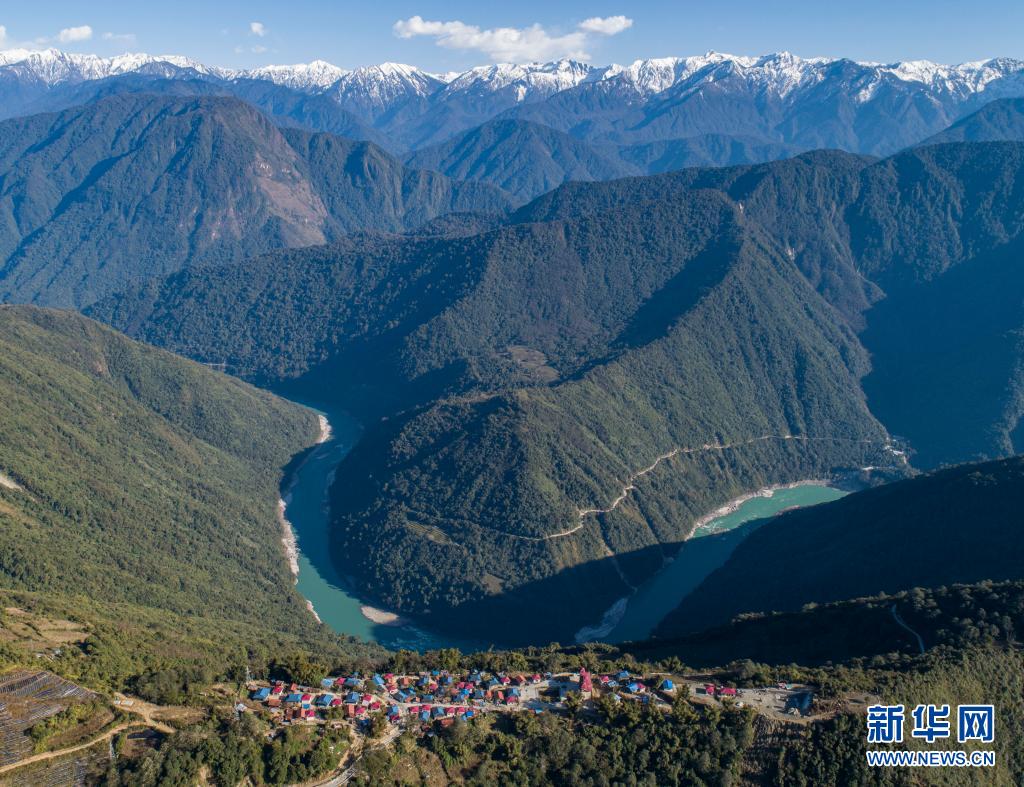 這是2月9日拍攝的位于雅魯藏布江邊的林芝市墨脫縣德興鄉(xiāng)巴登則村(無(wú)人機(jī)照片)。新華社記者 孫非 攝