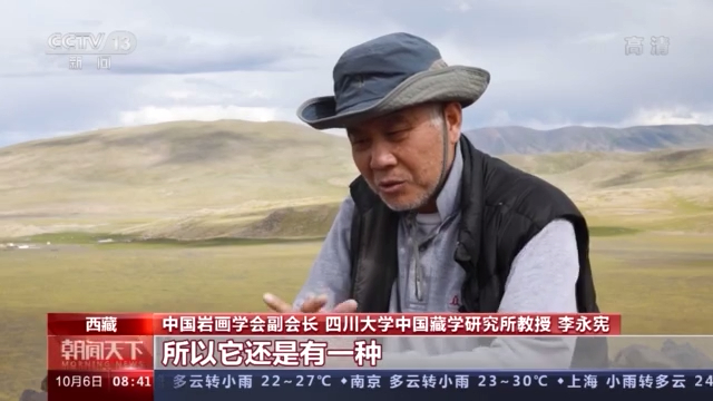 中國(guó)巖畫學(xué)會(huì)副會(huì)長(zhǎng)、四川大學(xué)中國(guó)藏學(xué)研究所教授 李永憲:它面對(duì)這個(gè)湖泊非常開闊,然后背靠高山,所以它還是有一種就是我們藏北游牧部落比較傳統(tǒng)的一個(gè)領(lǐng)地意識(shí),在巖石上留下我們特有的印記。