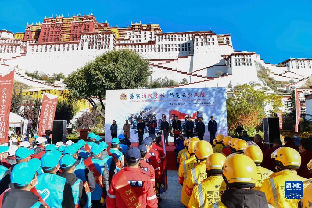 11月4日拍攝的西藏自治區(qū)2021年“119”消防宣傳月活動啟動儀式現(xiàn)場。新華社記者 晉美多吉 攝