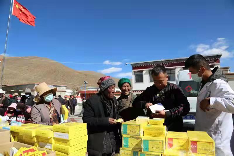 在加麻鄉(xiāng)免費(fèi)義診活動現(xiàn)場,奇正藏藥山南分區(qū)也給予了大力的支持和幫助,帶來4萬多元的藏藥,包括護(hù)膝和護(hù)腰等免費(fèi)發(fā)放給當(dāng)?shù)剞r(nóng)牧民群眾。