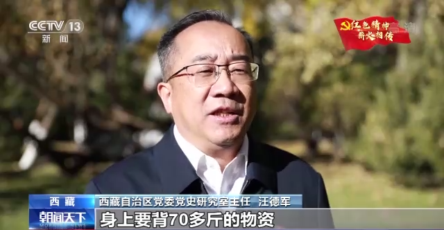 西藏自治區(qū)黨委黨史研究室主任 汪德軍:進(jìn)藏部隊(duì)每一個(gè)干部戰(zhàn)士身上要背70多斤的物資,徒步走進(jìn)西藏。在翻越西藏大山大河過程中,干部戰(zhàn)士克服了重重困難,一路為西藏老百姓看病送藥,讓我們西藏老百姓首先認(rèn)識(shí)了解放軍,認(rèn)識(shí)了共產(chǎn)黨。