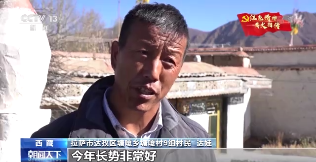 拉薩市達(dá)孜區(qū)塘嘎鄉(xiāng)塘嘎村9組村民 達(dá)娃:(農(nóng)業(yè)研究所)給了我們1500畝的良種進(jìn)行試種,今年長勢非常好,一畝地可以出800到900斤,大家非常喜歡。這個(gè)良種一方面產(chǎn)量非常高,另一方面抗倒伏。我們收割很方便,秸稈的量也比其他的品種要多。