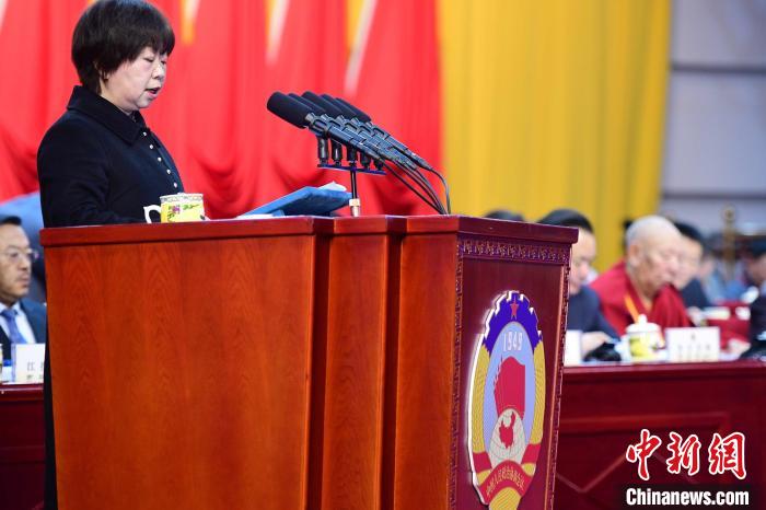 西藏政協(xié)農(nóng)業(yè)界委員、西藏自治區(qū)農(nóng)業(yè)技術(shù)推廣服務(wù)中心站長(zhǎng)陳俐發(fā)言。貢嘎來松 攝