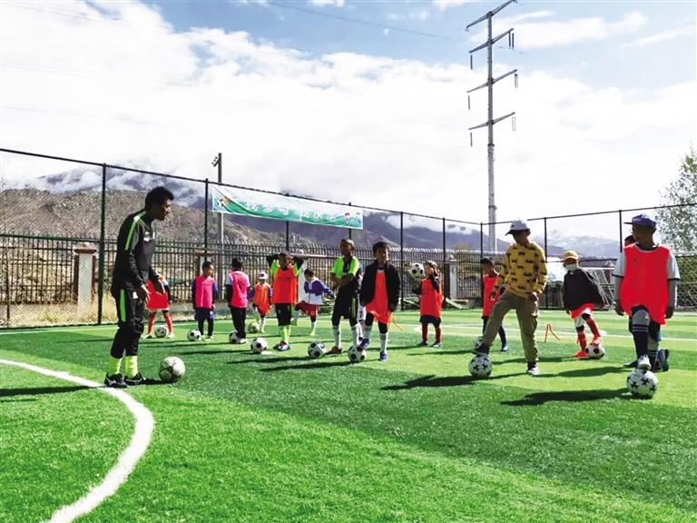 孩子們正在上足球課。圖由拉薩市青少年實(shí)踐基地提供