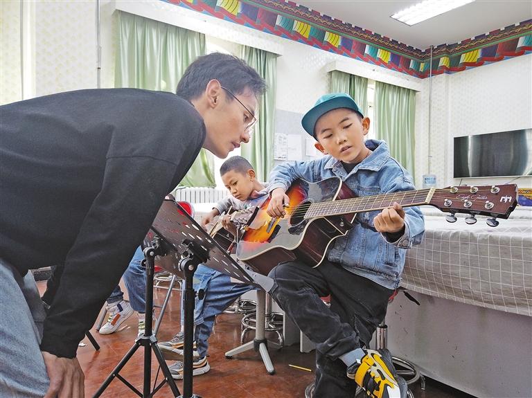 每到周末和寒假,音樂室里飄蕩著悠揚的扎念、二胡、吉他和揚琴聲;舞蹈空間、美術(shù)空間、多功能教室內(nèi),孩子們跳舞、畫畫、練藏文書法、學(xué)習(xí)英語;活動場上,孩子們踢足球、打籃球。“在活動中心里,不僅能跟大家一起玩,還能學(xué)到不少東西,我很喜歡在這里學(xué)習(xí)?!睂W(xué)生宗尕吉高興地對記者說?;顒又行牡母鞣N特色活動,充分滿足了孩子的興趣愛好,讓他們能夠張揚個性、快樂成長、培養(yǎng)特長、多元發(fā)展。