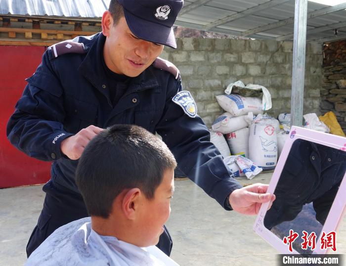 金東邊境派出所民警為轄區(qū)內(nèi)的小朋友理發(fā)。冉文娟 攝