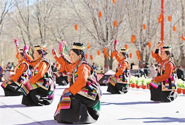 近年來,山南市堅(jiān)持“保護(hù)為主、搶救第一、合理利用、傳承發(fā)展”的方針,加強(qiáng)組織領(lǐng)導(dǎo),狠抓科學(xué)規(guī)劃,強(qiáng)化保護(hù)措施,非物質(zhì)文化遺產(chǎn)保護(hù)工作取得了顯著成績(jī)。 圖為山南市瓊結(jié)縣金珠村縣級(jí)非遺歌舞《百·甲江》。記者 巴桑旺姆 攝