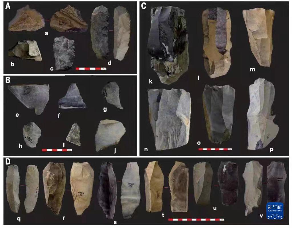 尼阿底遺址出土原生地層舊石器時(shí)代石制品4000余件,包括石葉?!敖?jīng)過縝密的科學(xué)研究和分析,這一遺址距今4萬年至3萬年?!敝袊茖W(xué)院古脊椎動(dòng)物與古人類研究所張曉凌博士說。