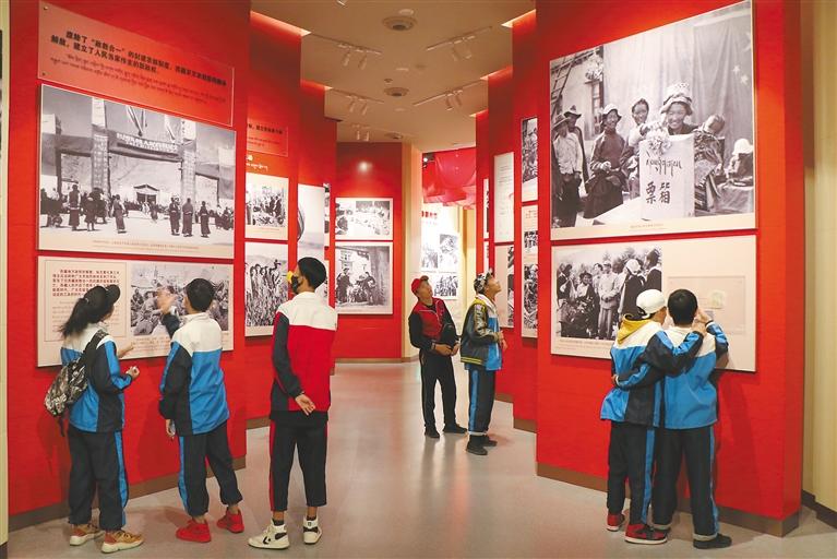 圖為學(xué)生們參觀譚冠三紀(jì)念館。